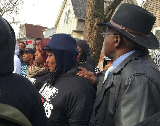 Mẹ của Quintonio LeGrier (giữa) khóc thương con trai. Ảnh: Reuters