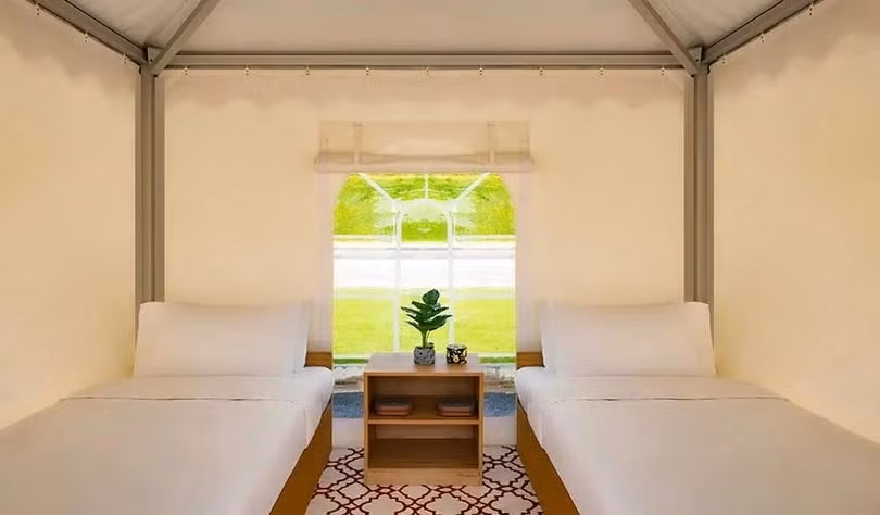 Nếu du khách không cần một chỗ nghỉ sang trọng, những khu lều và cabin nhỏ tại những “ngôi làng người hâm mộ” là một lựa chọn không tồi. Ngôi làng ở phía bắc đảo Qetaifan cách sân vận động Lusail 7 km gồm 1.800 căn lều. Mỗi căn lều chứa hai giường đơn, có Wi-Fi và dịch vụ giặt là tính phí, giá 200 USD/đêm.