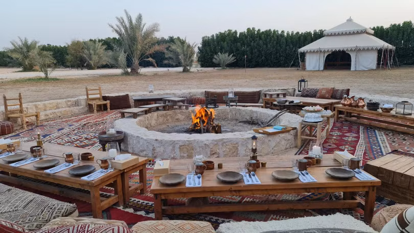 Trang trại Heenat Salma cung cấp dịch vụ lưu trú, đồng thời là trung tâm nuôi trồng hữu cơ giữa sa mạc. Ảnh: New in Doha.