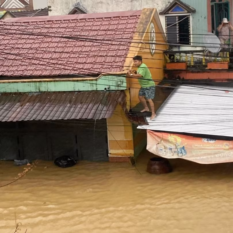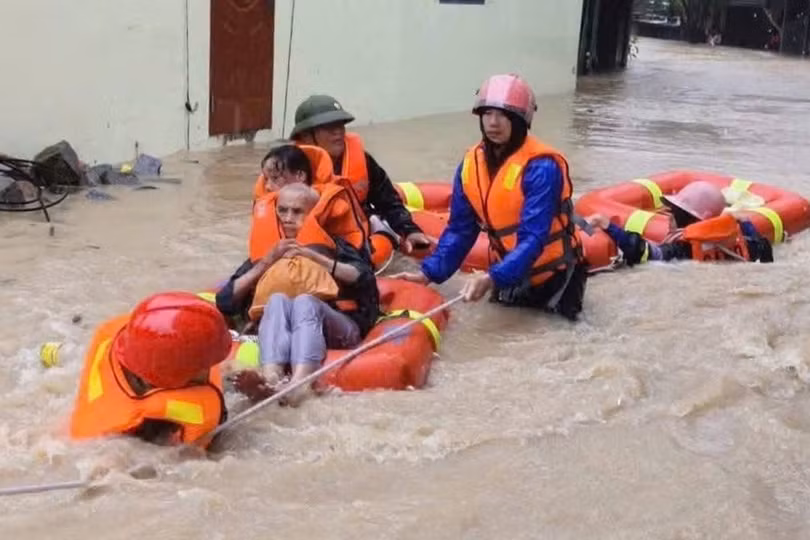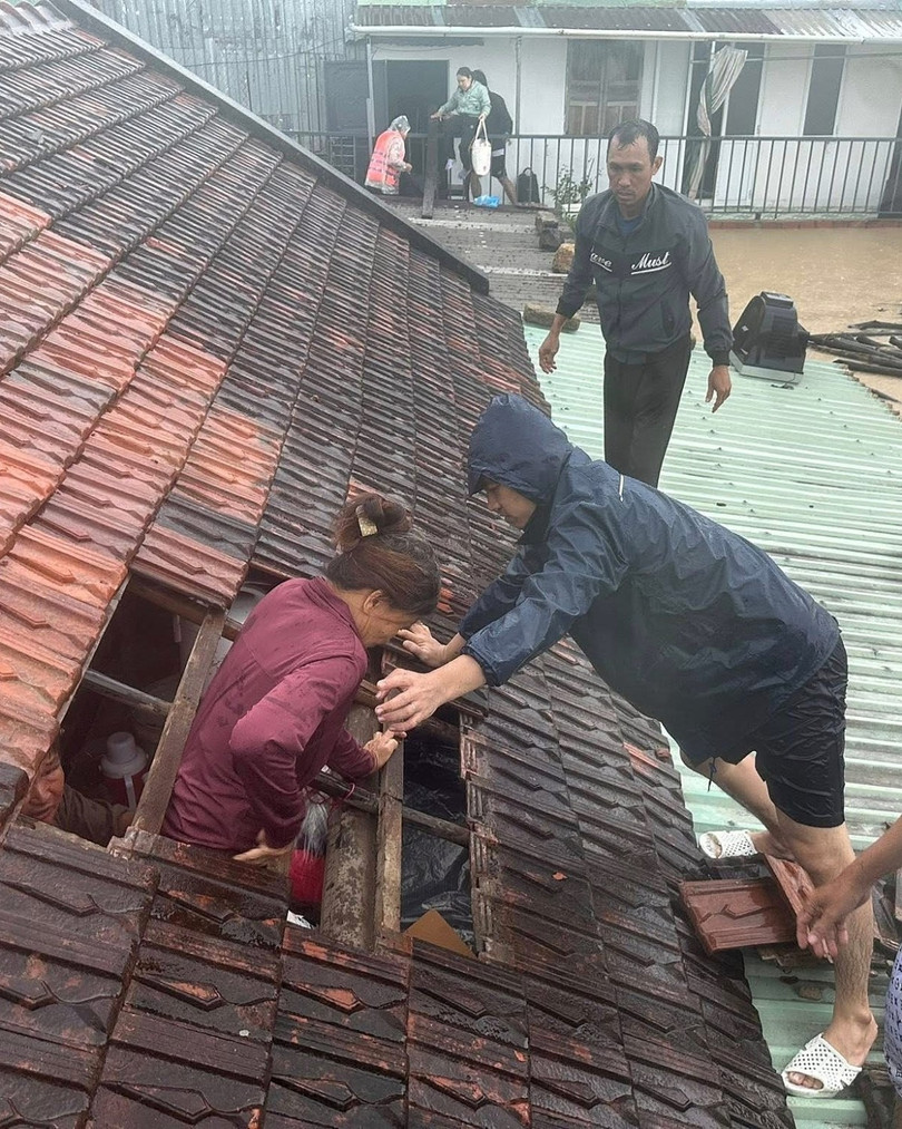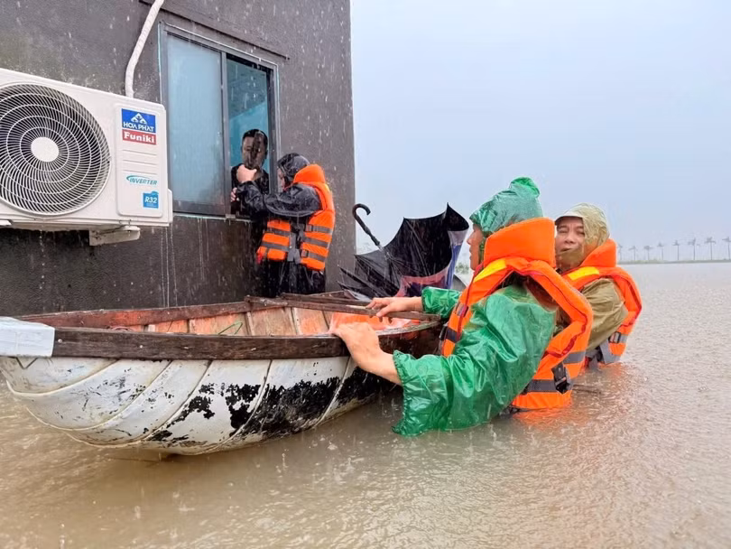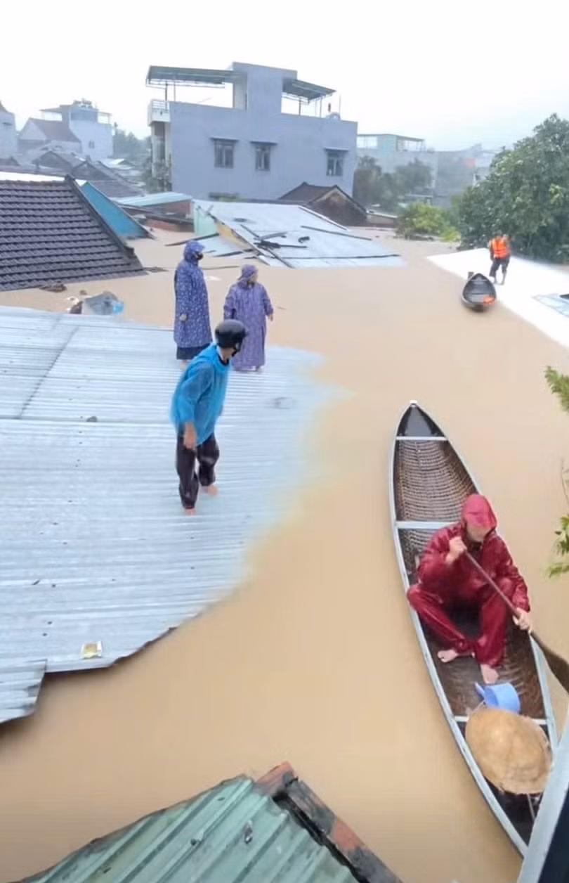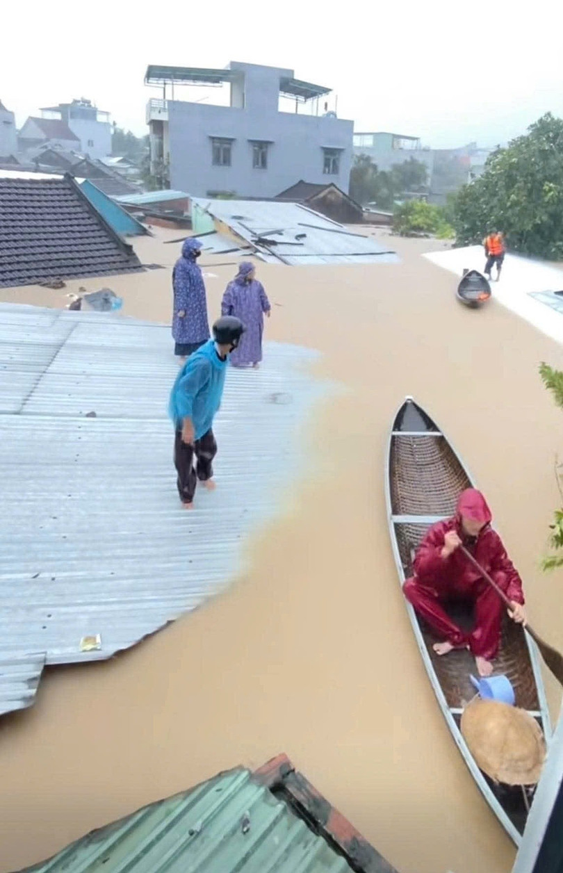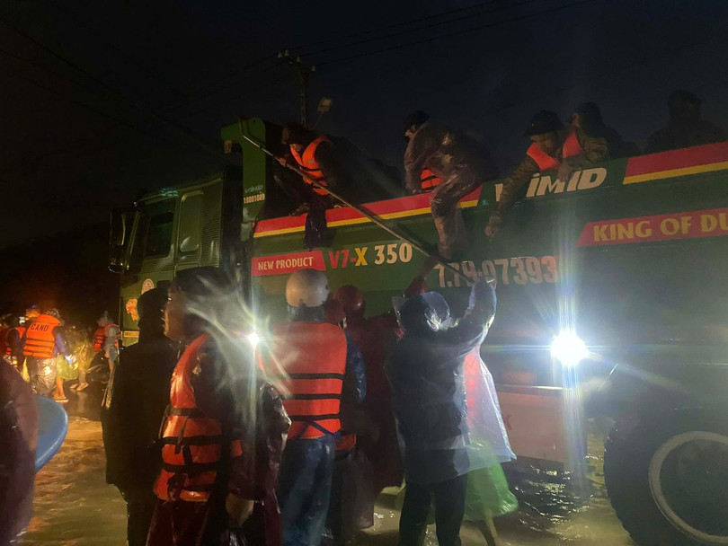 Hàng nghìn người dân không kịp sơ tán, phải leo lên nóc nhà khi nước dâng cao. Các lực lượng Bộ đội, dân quân, công an tiếp cận các khu vực nguy hiểm để đưa người dân ra ngoài.