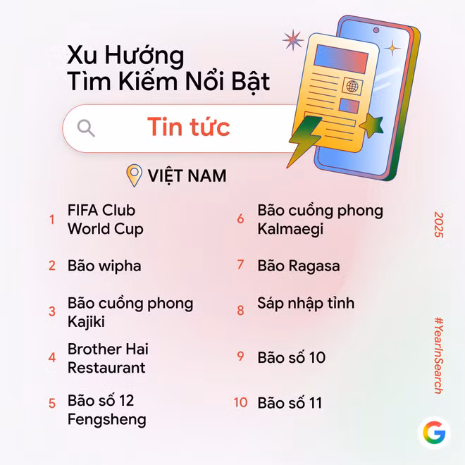 Dưới đây là Danh sách Google Year in Search 2025 - Một năm Tìm kiếm tại Việt Nam: