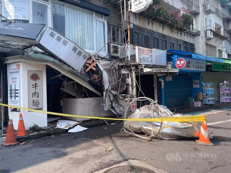 Mặt tiền một tiệm mì ở chợ đêm thành phố Đài Bắc bị hư hỏng.