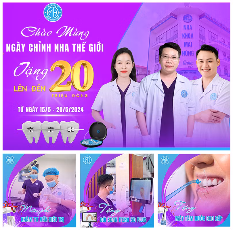 Cụ thể, từ ngày 15/5 đến hết ngày 20/5/2024, khách hàng sử dụng dịch vụ niềng răng tại các cơ sở của Nha khoa Mai Hùng Group sẽ nhận được những ưu đãi vô cùng hấp dẫn như sau: