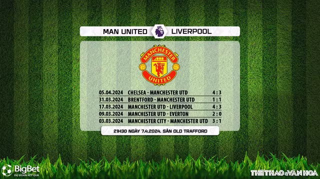 Bất chấp việc phải chơi trên sân Manchester United, Liverpool được đánh giá cao hơn hẳn xuất phát từ phong độ lẫn chất lượng chơi bóng hiện tại. Nhưng phải nhớ rằng, ở 3 trận gần nhất tại sân Old Trafford, Quỷ đỏ đều giành chiến thắng chung cuộc. Và trận derby nước Anh chưa bao giờ là dễ dàng.