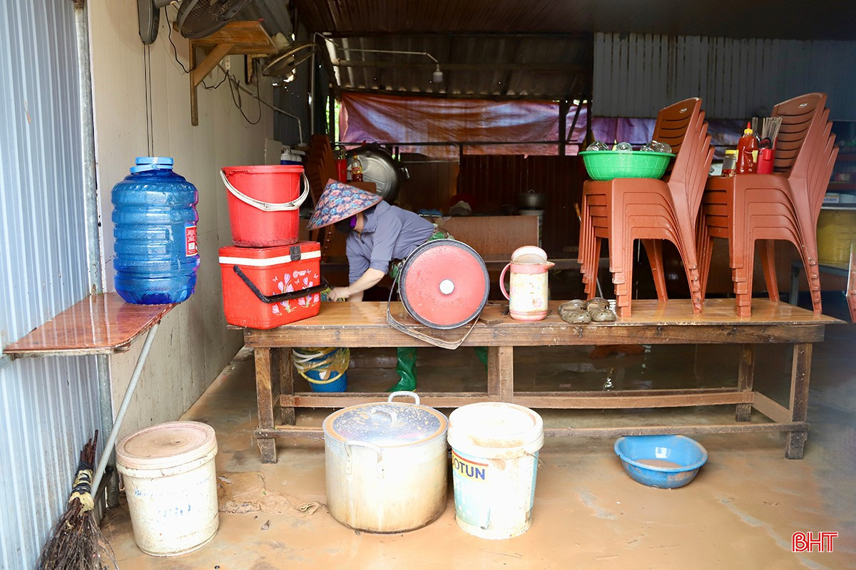 Cũng tại địa bàn xã Cẩm Duệ, nhiều tiểu thương tại chợ Vực đang tất bật dọn dẹp, nỗ lực "cứu" tài sản sau nhiều ngày chìm trong nước lũ.