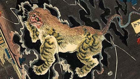 Trong truyện, một con Nue lấy hình dạng đám mây đen và tới ám Nhật Hoàng. Ông nhanh chóng phát bệnh và bị ám ảnh bởi các giấc mơ mỗi khi ngủ. Nhật Hoàng ngày càng ốm yếu, cho tới khi một võ sĩ bắn mũi tên vào đám mây đen và giết con quái vật. Tới nay, vẫn còn ngôi miếu ở bờ vùng Biển Nhật Bản nơi được cho là ngôi mộ của con vật này.