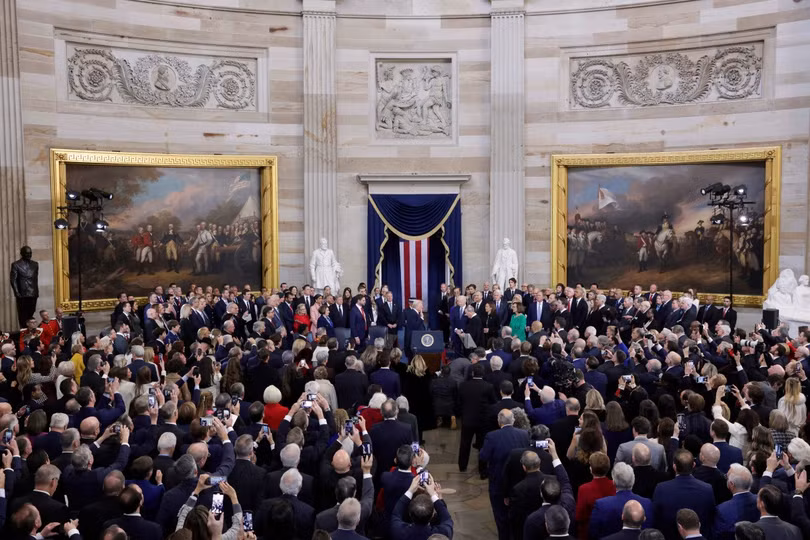 Lễ nhậm chức diễn ra tại khu Rotunda ở Điện Capitol, thay vì được tổ chức ngoài trời như truyền thống do giá rét.