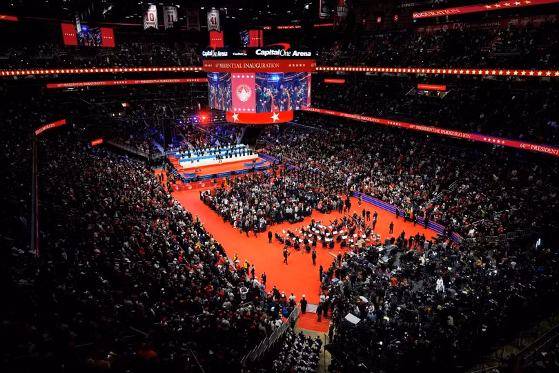 Nhà thi đấu Capital One Arena có sức chứa 20.000 người. Trong lễ nhậm chức năm 2017, ông Trump và gia đình đã diễu hành trên đường phố, tuy nhiên, sự kiện năm nay phải tổ chức trong nhà vì lý do thời tiết.
