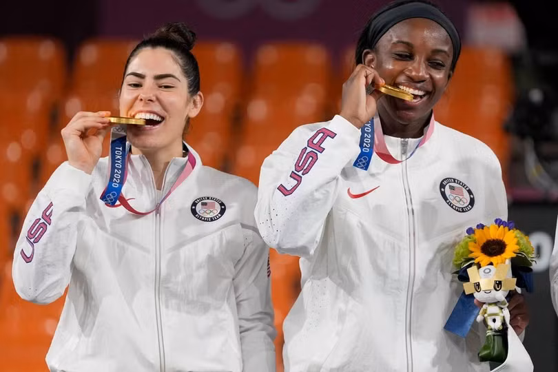 Tuyển thủ bóng rổ nữ Mỹ, Diana Taurasi đang chia sẻ kỷ lục giành nhiều HC vàng Olympic nhất trong một môn thể thao đồng đội, bằng đồng đội cũ Sue Bird, với cùng năm HC vàng từ Athens 2004 đến Tokyo 2020. Nhưng Taurasi có thể độc chiếm kỷ lục này, trở thành VĐV có nhiều HC vàng Olympic nhất trong bất kỳ môn thể thao đồng đội nào nếu tuyển Mỹ vô địch tại Paris 2024.