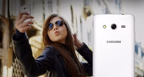 Galaxy Core 2 nhắm tới phân khúc tầm trung và sở hữu thiết kế trẻ trung, hiện đại cùng nhiều chức năng phù hợp với phái đẹp. Galaxy Core 2 được thiết kế vuông vắn và bo tròn vừa đủ ở bốn góc, viền ánh kim sáng bóng và mặt sau thiết kế vân da sang trọng. Với độ mỏng 9,8 mm và nặng 138g, máy tạo cảm giác nhẹ nhàng, thanh thoát, khả năng cầm nắm tốt bởi kích cỡ trên rất phù hợp với bàn tay nhỏ nhắn của phụ nữ.