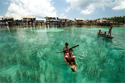 Một điểm thú vị nữa khi đến Maiga là du khách còn được tận mắt chứng kiến những bộ tộc ở đây xây nhà sống ngay trên mặt biển trong veo này.