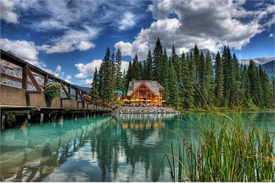 Hồ Emerald nằm trong công viên quốc gia Yoho, Canada, được bao quanh bởi núi rừng hùng vĩ. Mùa hè, nước hồ Emerald màu xanh ngọc bích trong vắt long lanh trong ánh nắng đẹp đến mê hoặc.