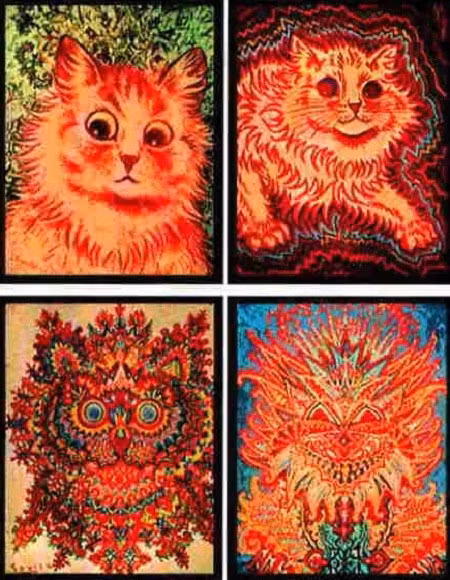 Họa sĩ người Anh nổi tiếng với những bức tranh khắc họa loài mèo - Louis Wain (1860-1939), khi về già, đã phải chịu đựng căn bệnh tâm thần phân liệt. Sự hoang tưởng khiến Louis Wain mất niềm tin và chuyển sang căm ghét những người thân yêu nhất.