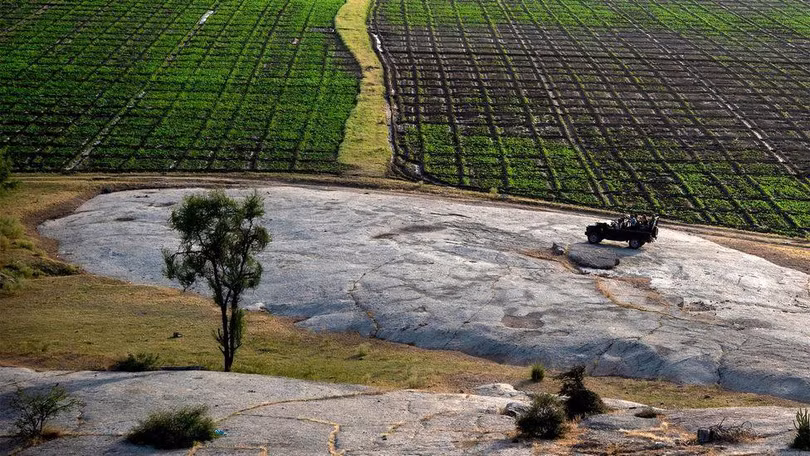Đến ngôi đền đá nhỏ trên đỉnh đồi, Ranawat phóng tầm mắt xuống vùng đất nông nghiệp bên dưới, đan xen là khung cảnh cằn cỗi.