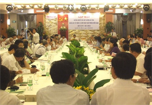 Trước thềm kỷ niệm 35 năm ngày giải phóng miền Nam, thống nhất đất nước, giữa thành phố rực cờ hoa hướng về Ngày chiến thắng 30-4 lịch sử, những người con Hà Tĩnh hiện đang sinh sống và làm việc tại Thành phố Hồ Chí Minh lại có dịp tụ họp. Ngay từ sáng sớm 15-4, tiền sảnh Khách sạn Kỳ Hoà, Quận 10 đã râm ran những câu chào hỏi đậm chất Nghệ “răng, rứa, mô, tê” .