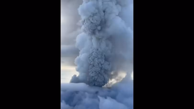 Hình ảnh do truyền thông Nga đăng cho thấy cột tro bụi khổng lồ phun lên từ miệng ngọn núi lửa Krasheninnikov ở bán đảo Kamchatka, vùng Viễn Đông Nga rạng sáng nay.