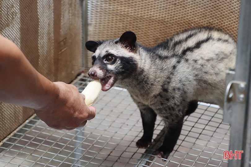 Thức ăn của chồn hương rất đa dạng như: chuối, cá trê, cá rô phi, trứng gà, đầu cổ gà...
