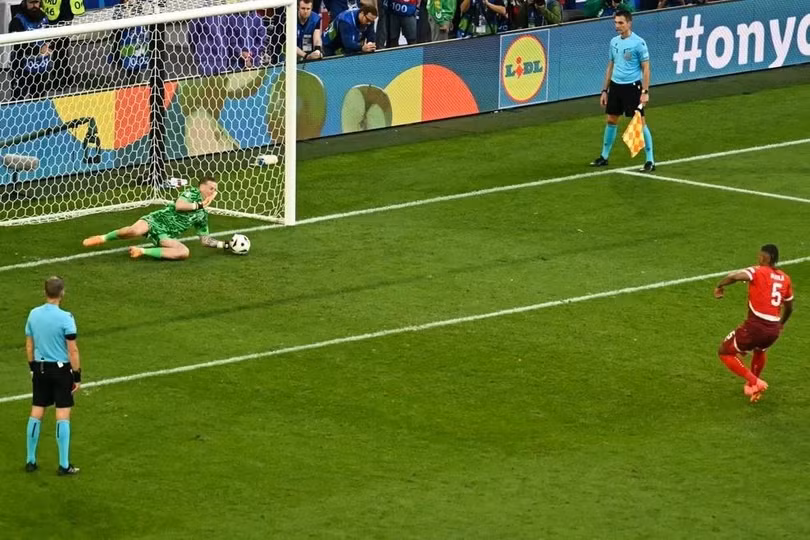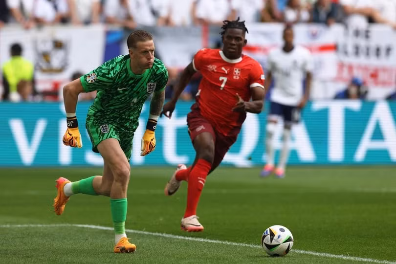 Trong khi đó, Thụy Sĩ đá hỏng ngay lượt đầu, khi Akanji để Pickford cản được cú sút. Chừng đó là đủ để Thụy Sĩ ôm hận trước người Anh.