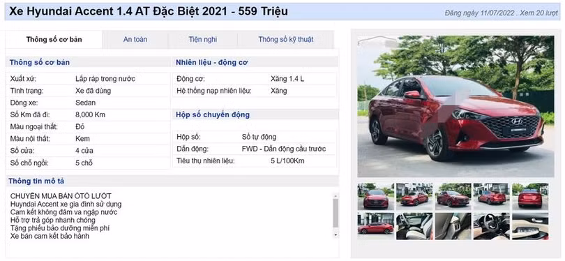 Chiếc Accent AT Đặc biệt 2021 được rao bán với giá 559 triệu đồng.