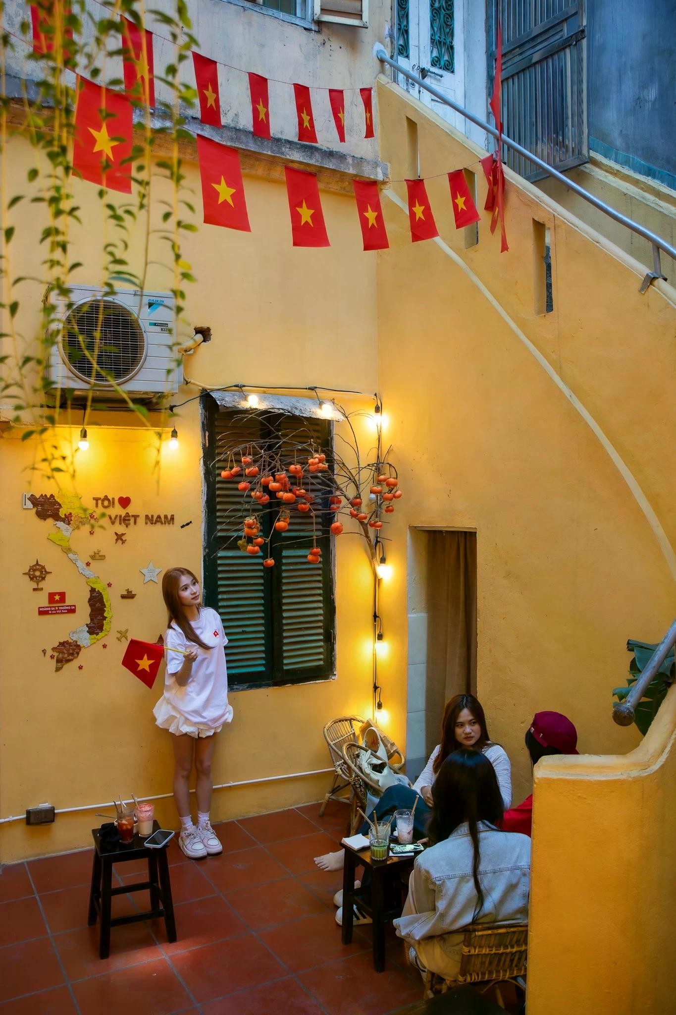 Tháng 4, nhiều quán cà phê tại Hà Nội được nhuộm đỏ bởi cờ hoa và menu chủ đề lễ 30/4. Các bạn trẻ không ngại đội nắng, chờ đợi hoặc đi xa để check-in tại những quán này.