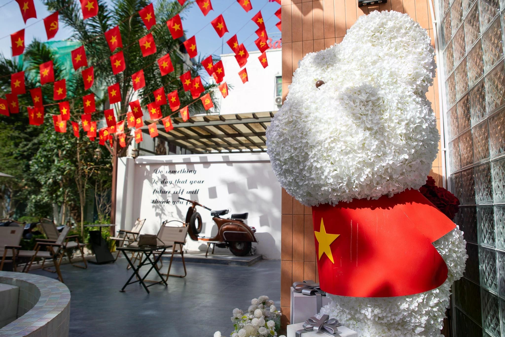 Chia sẻ với Tri Thức - Znews, Nguyễn Thị Hoài Ninh (35 tuổi), chủ quán ChiNi Tee & Coffee, cho biết từ cuối tháng 3, quán bắt tay vào trang trí theo chủ đề 30/4 với sắc đỏ chủ đạo, sử dụng hình ảnh cờ Tổ quốc để làm điểm nhấn. Toàn bộ vật dụng trang trí như cờ, áo gấu bông hình cờ đỏ sao vàng, báo in, cờ cầm tay... đều được chuẩn bị thủ công, thiết kế riêng và được khách hàng yêu thích. Chủ quán tiết lộ chi phí cho những đồ trang trí này đều rất rẻ, song mang lại hiệu quả cao về mặt hiệu ứng, giúp quán được biết đến nhiều hơn. "Quán muốn lan toả tinh thần yêu nước theo cách nhẹ nhàng, gần gũi với giới trẻ. Tiêu ngữ Việt Nam ‘Độc lập – Tự do – Hạnh phúc’ được chúng tôi thể hiện thông qua từng đồ uống, miếng bánh”. Ninh kể thêm để có món bánh tiramisu đỏ sao vàng như hiện tại, quán làm thử 10 lần mới chọn được công thức ưng ý. Kể từ khi “lên đồ” cho dịp lễ, quán đón lượng khách tăng gấp 3 lần so với thông thường. Đặc biệt vào dịp cuối tuần, quán phải nhiều lần từ chối nhận khách vì quá tải. Có ngày cao điểm, quán phục vụ gần 1.000 ly nước, trong đó combo "trà độc lập - bánh tự do" chiếm khoảng 70%. Không chỉ ở khu Ngoại Giao Đoàn, nhiều quán cà phê khác khắp Hà Nội cũng nhanh chóng hòa mình vào không khí lễ hội. Tại Tree Bee - một quán cà phê 4 tầng ở Hồ Tây - giữa trưa nắng vẫn có hàng dài bạn trẻ xếp hàng, chụp ảnh cùng bức tường hoa ghép hình bản đồ Việt Nam. Bức tường sử dụng hơn 3.000 bông hoa với nền đỏ, hình đất nước màu vàng nổi bật giữa trung tâm. Diệu Thanh (sinh năm 2001, quê Hải Dương) biết đến quán qua mạng xã hội và tranh thủ một ngày nghỉ để lên Hà Nội check-in. "Tường hoa ghép bản đồ Việt Nam và lá cờ đỏ sao vàng thực sự gây xúc động. Tôi thấy xứng đáng dù phải đứng giữa nắng hơn 30 phút để chụp ảnh. Nhìn vào bức ảnh, tôi cảm thấy như đang hòa mình vào một phần của câu chuyện dân tộc", Thanh bộc bạch.