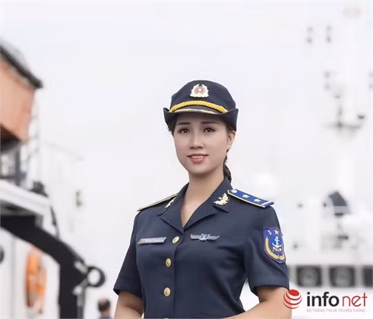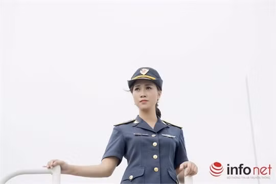 Hình ảnh các chiến sĩ cảnh sát biển rắn rỏi như mềm lại và gần gũi khi bộ quân phục được khoác lên thân mình cô gái Việt duyên dáng. Bộ ảnh do người mẫu Thanh Vân thực hiện cùng cán bộ, chiến sĩ trên tàu cảnh sát biển 8003 tại Vùng cảnh sát biển 1.