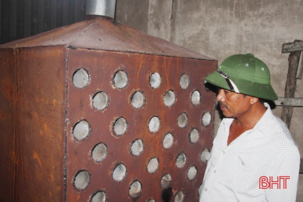 Cơ sở sản xuất bánh đa nem của anh Trần Hữu Kỷ (tổ dân phố Trung Đình – Thạch Quý) vừa tận dụng phơi sấy từ diện tích vườn khá rộng (gần 2.000 m2) vừa đầu tư máy sấy công suất 300 phên bánh/giờ. Thế nên, nắng cũng như mưa, cơ sở này vẫn có thể “xuất xưởng” gần 2 vạn bánh mỗi ngày.