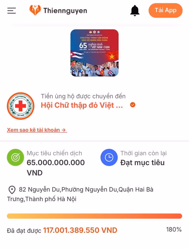 Nhân dân cả nước có thể truy cập vào địa chỉ https://thiennguyen.app/donate-target/1955184412459020288 hoặc tải App "Thiện nguyện" trên App Store, CH Play để cập nhập số tiền ủng hộ nhân dân Cuba. Đặc biệt, sao kê danh sách ủng hộ cũng được công khai tại đây.