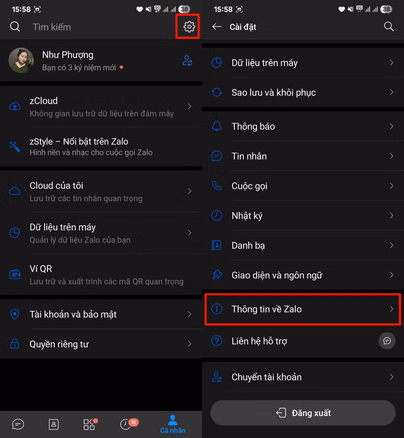 Bạn hãy vào mục Cài đặt trong Zalo > Tiến hành đăng xuất tài khoản > Đăng nhập lại để làm mới kết nối và khắc phục lỗi, giúp cuộc gọi hoạt động ổn định hơn nha.