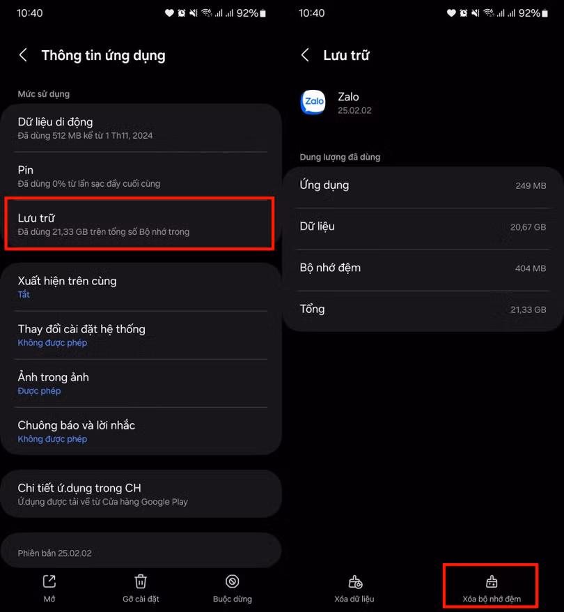 2.4 Xóa bộ nhớ đệm ứng dụng Zalo