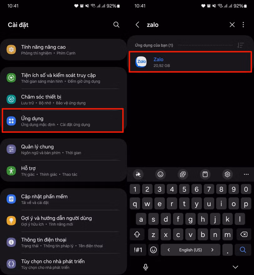 Bước 1: Bạn hãy mở Cài đặt trên điện thoại lên > Nhấn chọn đến mục Ứng dụng > Tìm kiếm ứng dụng Zalo.