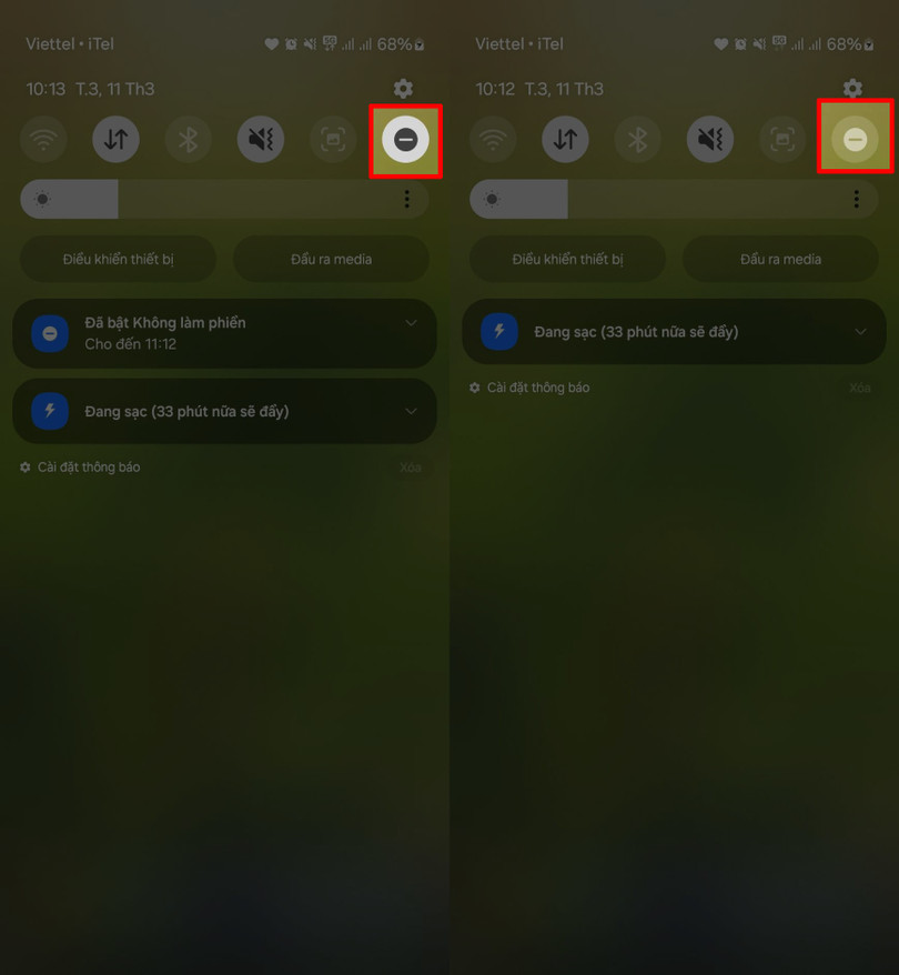 Vuốt từ trên xuống để hiển thị thanh điều khiển > Nhấn vào biểu tượng Không làm phiền để tắt (Biểu tượng không sáng đèn là đã tắt).