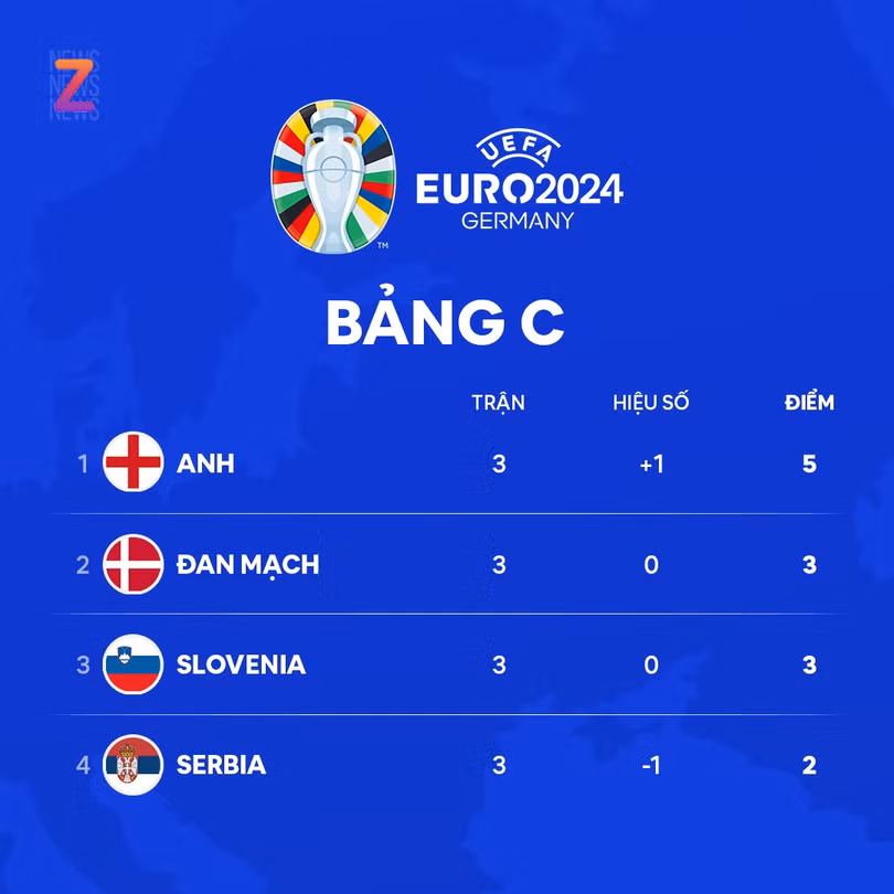 Slovenia chơi kiên cường để cầm hòa Anh với tỷ số 0-0 rạng sáng 26/6 (giờ Hà Nội). Đây cũng là tỷ số của trận đấu giữa Đan Mạch và Serbia.