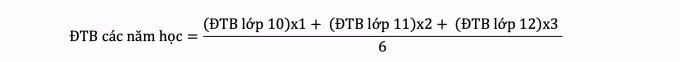 Trong đó, điểm trung bình các năm học được tính theo công thức sau: