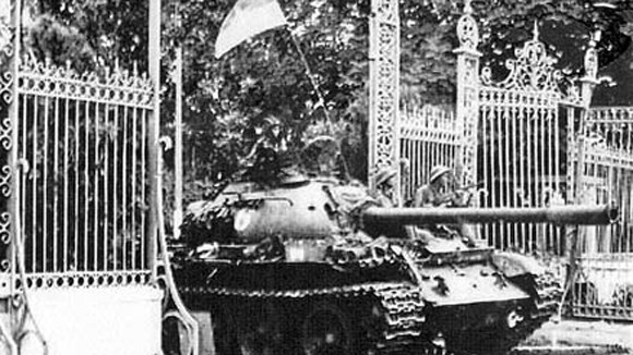 Vào thời khắc lịch sử đó của dân tộc, có hai chiếc xe tăng “huyền thoại” mang số hiệu 390 và 843 đã húc đổ cánh cổng của Dinh Độc Lập. Chiếc xe tăng 390 đã vào sân Dinh Độc Lập đầu tiên vì chiếc 843 lúc đó bị kẹt tại cửa ngách bên trái.