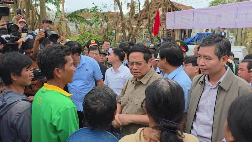 Ngay khi trực thăng hạ cánh, Thủ tướng đến thôn Phú Thứ (xã Tây Hòa) thăm hỏi người dân, nắm tình hình khắc phục hậu quả. Nhiều hộ cho biết toàn bộ vật dụng sinh hoạt bị nước cuốn trôi, hư hỏng hoàn toàn; trước mắt cần hỗ trợ để sắm sửa lại, lâu dài mong được cấp giống lúa, vật tư nông nghiệp để phục hồi sản xuất.