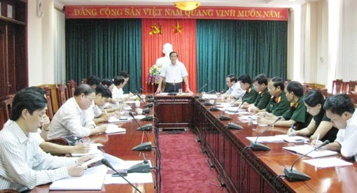 Chiều 12-10, Thường trực Tỉnh uỷ Hà Tĩnh làm việc với Đảng uỷ và Bộ chỉ huy Quân sự tỉnh nghe kế hoạch chuẩn bị kỷ niệm 65 năm Ngày thành lập Quân đội nhân dân Việt Nam (22/12/1944 – 22/12/2009)- 20 năm Ngày hội quốc phòng toàn dân (22/12/1989 – 22/12/2009). Bí thư Tỉnh ủy Nguyễn Thanh Bình chủ trì buổi làm việc.