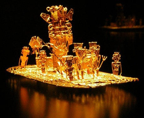 Tương truyền thành phố El Dorado (có nghĩa là thành phố vàng) là nơi sinh sống của bộ tộc Muisca. Nơi này nằm ở gần hồ Guatavita của thủ đô Bogotá, đất nước Colombia (một đất nước thuộc Nam Mỹ). Khi nhà vua mới của người Muisca lên ngôi, họ đem cát vàng rắc lên người nhà vua. Vị vua này sẽ nhảy xuống hồ lặn, khi nổi lên trở lại, ông sẽ chính thức trở thành vua mới của bộ tộc.