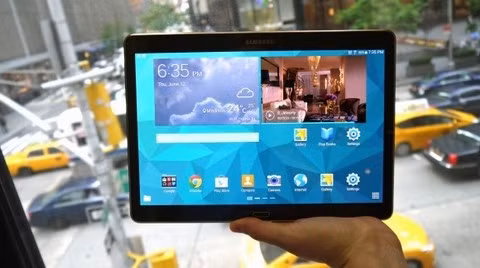 Samsung Galaxy Tab S 10.5 là máy tính bảng trọng lượng nhẹ và màn hình hiển thị sắc nét và rực rỡ, cùng nguồn pin lâu. Thời lượng pin của máy kéo dài 8 tiếng 57 phút. Máy sở hữu màn hình Super AMOLED cỡ 10,5-inch với màu sắc bắt mắt và góc nhìn siêu rộng. Đặc biệt, nếu bạn đang sở hữu điện thoại Galaxy, ứng dụng cải tiến SideSync trên máy tính bảng này cho phép người dùng nhận cuộc gọi, kéo và thả các tệp tin từ điện thoại Galaxy S lên máy tính bảng này.