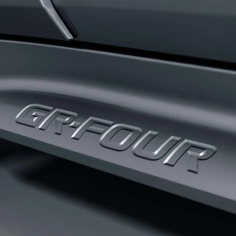 Theo đó, chúng ta có thể thấy chắn bùn trước mở rộng của GR Corolla có hốc hút gió cỡ lớn cùng huy hiệu GR, trong khi dòng chữ “GR-Four” được in nổi bật trên ốp sườn xe.
