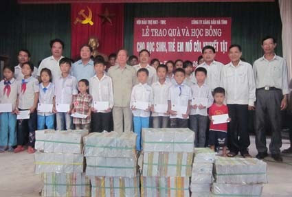 Sáng 28/9, Hội bảo trợ người tàn tật và trẻ mồ côi Hà Tĩnh phối hợp với Công ty xăng dầu Hà Tĩnh đã trao 31 suất học bổng, mỗi suất trị giá 500.000đ và 1.200 quyển vở cho học sinh nghèo mồ côi, khuyết tật xã Cẩm Thành (Cẩm Xuyên).