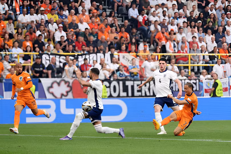 Phút 23, khung thành Hà Lan lại chao đảo. Mainoo chuyền sáng tạo để Foden áp sát khung thành. Ngôi sao của Man City rê dắt rồi tung cú sút vượt qua tầm với của thủ môn. Dù vậy, Dumfries đã có mặt kịp thời để dừng bóng ngay trên vạch vôi.