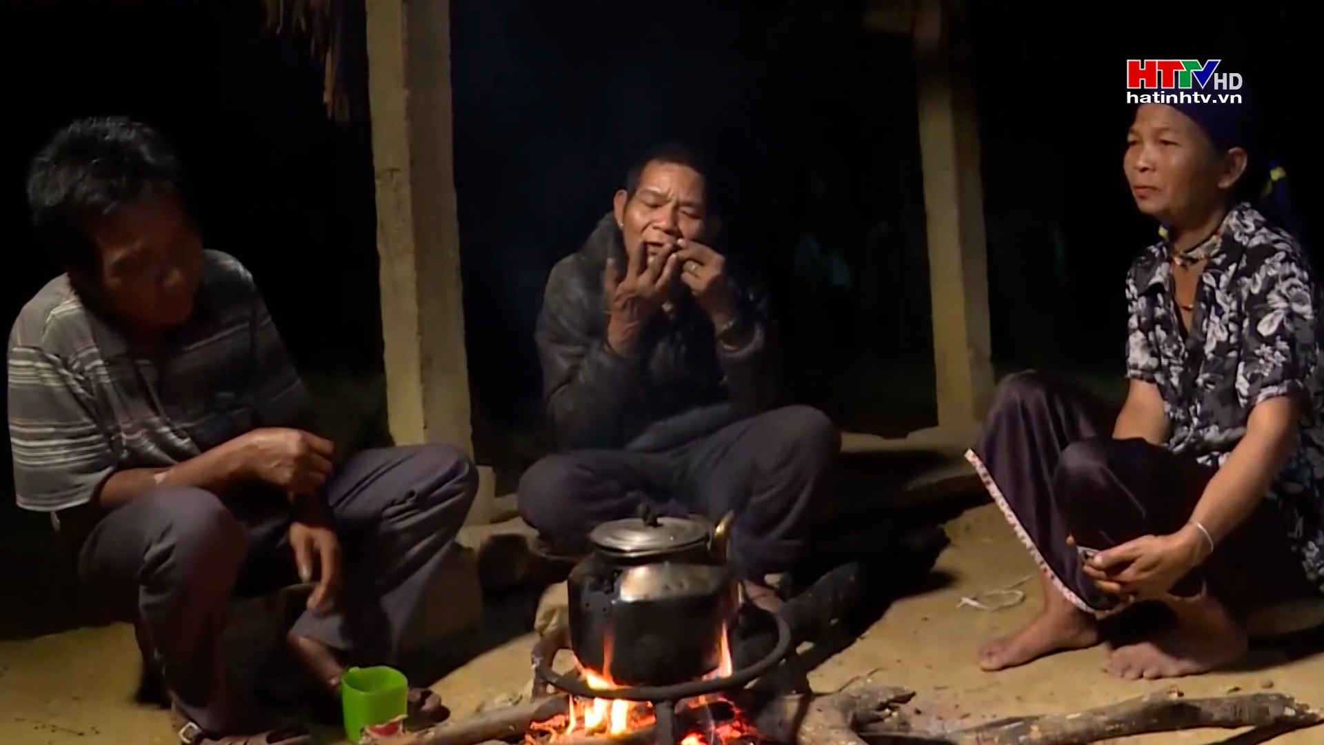 Ông Hồ Viết Phượng, Bản Rào Tre xã Hương Liên, huyện Hương Khê (người ngồi giữa), đang thổi đàn môi