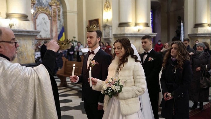 Giữa lúc tình hình vẫn đang hỗn loạn, một cặp đôi trẻ người Ukraina vẫn quyết định tổ chức đám cưới. Cô dâu và chú rể trong ngày vui nhất của đời mình đã hy vọng rằng tương lai của đất nước sẽ tươi sáng hơn.