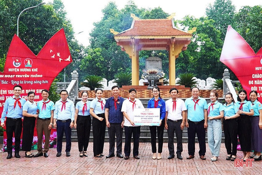 Huyện đoàn - Hội đồng đội huyện Hương Khê trao nguồn quỹ "Kế hoạch nhỏ" của các liên đội trên địa bàn hỗ trợ tôn tạo Di tích Chứng tích chiến tranh Trường cấp II Hương Phúc (xã Hương Trạch).