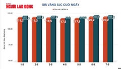 Tại Việt Nam, tính đến cuối ngày 7-5, giá vàng SJC được niêm yết ở mức 122,2 triệu đồng/lượng (bán ra), trong khi giá vàng nhẫn đạt 118 triệu đồng/lượng.