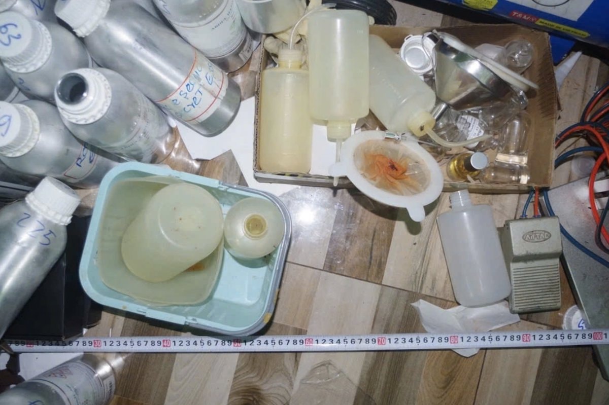 Trong đó có 2 kho chứa nguyên liệu, hóa chất và các điểm sang chiết, pha chế, sản xuất và đóng gói của nhóm người tại phường Tân Đồng và xã Tiến Hưng, TP Đồng Xoài.