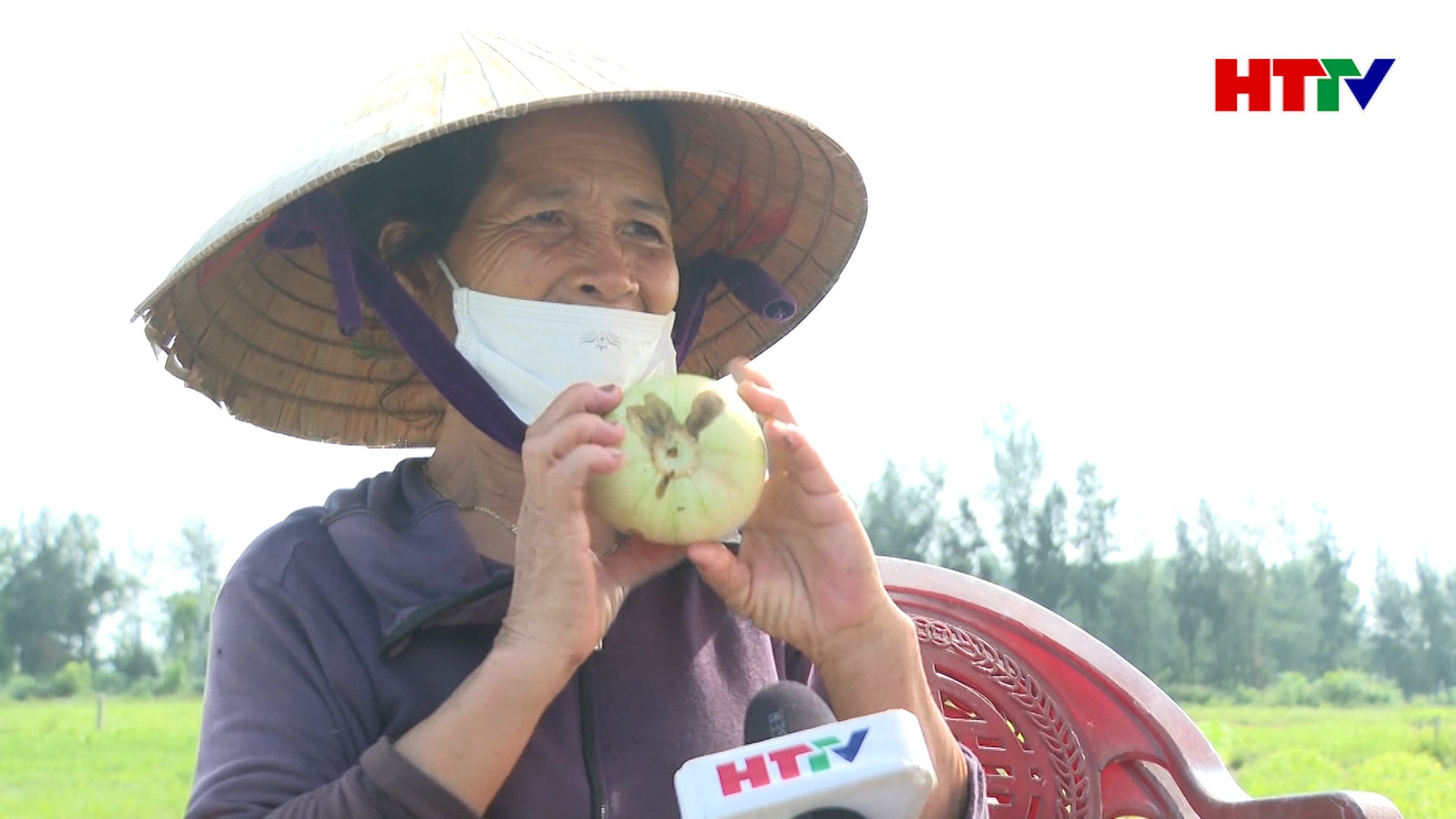 Gia đình bà Phạm Thị Thơm, thôn Nam Sơn, xã Thịnh Lộc, huyện Lộc Hà sản xuất 2 sào dưa lê. Thời điểm xuống giống thời tiết ẩm ướt, sương mù nhiều nên việc chăm sóc gặp khó khăn. Đặc biệt vào thời điểm chuẩn bị thu hoạch liên tiếp trời mưa, ruộng ở khu vực thấp trũng, nên dưa bị hư hỏng nhiều, năng suất giảm hơn một nửa so với vụ dưa năm trước.