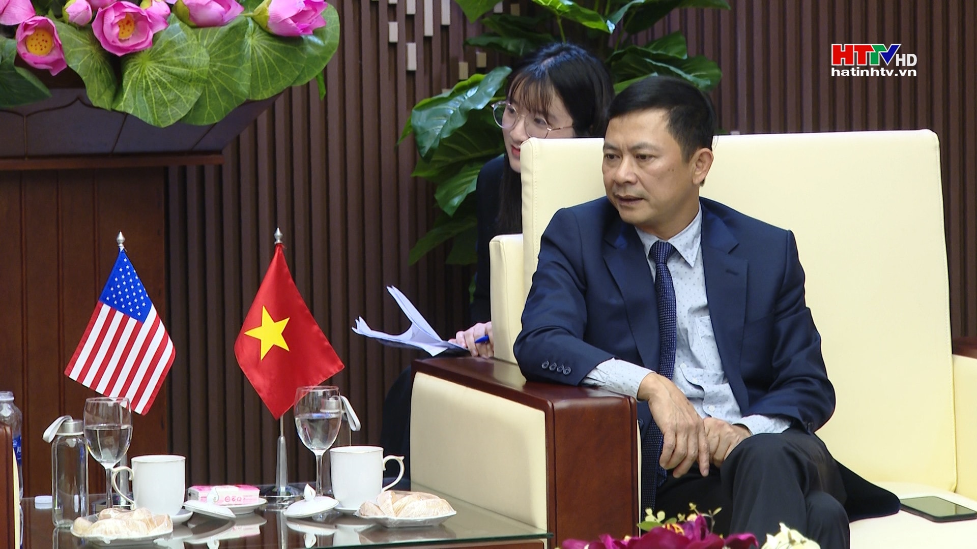 Đồng chí Phó Chủ tịch UBND tỉnh cũng ghi nhận và cảm ơnsự quan tâm, hỗ trợ từ Chính phủ; các tổ chức, doanh nghiệp của Hoa Kỳ trên các lĩnh vực như: Đầu tư các dự án; Viện trợ không hoàn lại trong y tế, nâng cao năng lực rà phá bom mìn; tìm kiếm quân nhân Mỹ mất tích trong chiến tranh; tăng cường khả năng chống chịu thiên tai... đồng thời bày tỏ mong muốn Đại sứ quán Hoa Kỳ tại Việt Nam tăng cường công tác kết nối, tuyên truyền, quảng bá những tiềm năng, lợi thế, các lĩnh vực tỉnh Hà Tĩnh đang ưu tiên kêu gọi đầu tư đến các doanh nghiệp, tập đoàn, nhà đầu tư của Hoa Kỳ; Chính phủ, các tổ chức phi chính phủ của Hoa Kỳ tiếp tục quan tâm, hỗ trợ đầu tư cho Hà Tĩnh, đặc biệt là từ nguồn vốn ODA, nguồn vốn viện trợ không hoàn lại; Đẩy mạnh các hoạt động hợp tác trên các lĩnh vực giáo dục, đào tạo, y tế, môi trường; Quan tâm hỗ trợ địa phương trong đào tạo, phát triển nguồn nhân lực chất lượng cao.