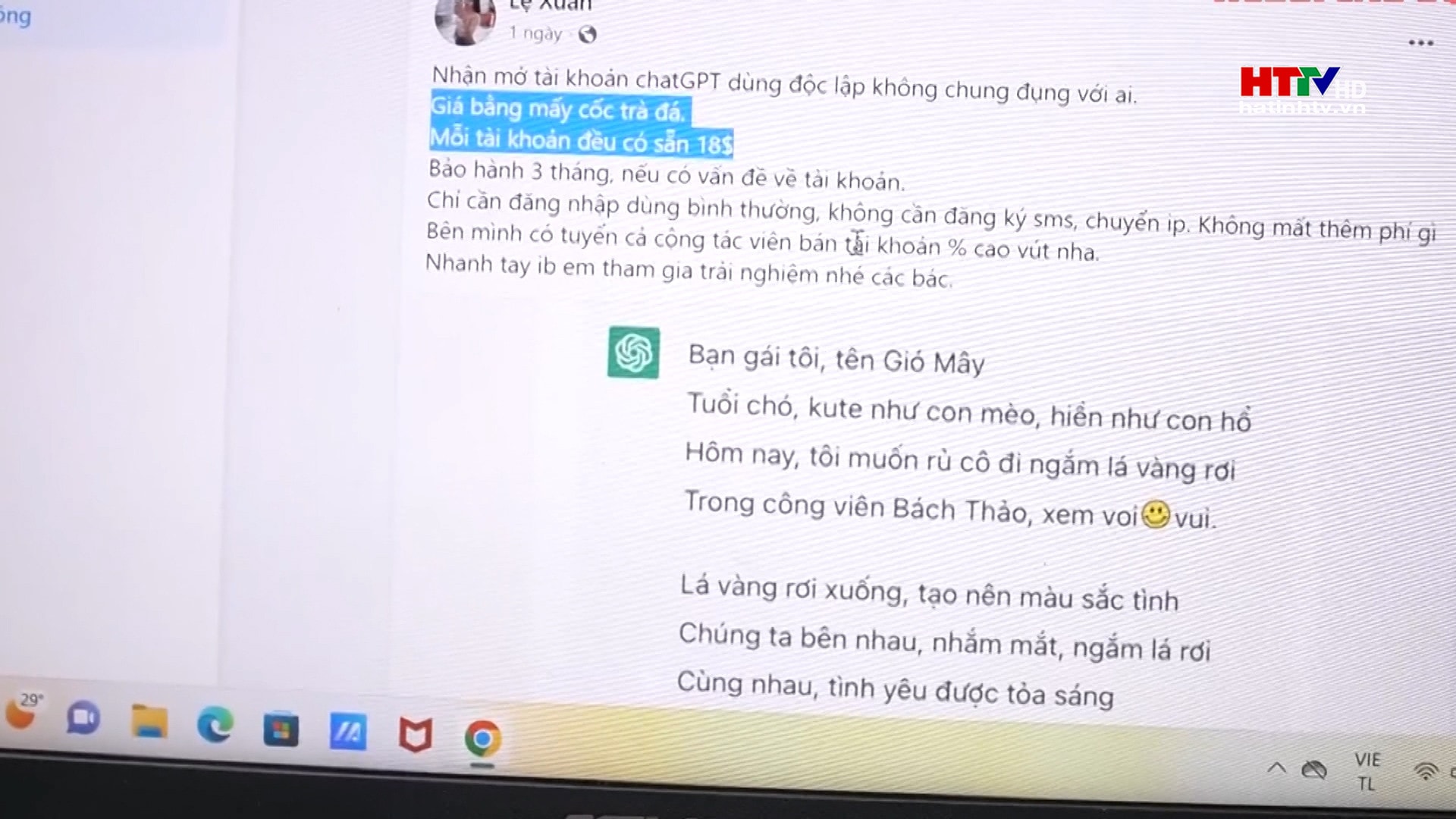 ChatGPT là một ứng dụng mới đang thu hút rất nhiều người tìm kiếm, sử dụng. Theo trào lưu này, tại Hà Tĩnh cũng có rất nhiều người tìm cách để trải nghiệm ứng dụng này, đặc biệt là giới trẻ. Tuy nhiên, theo các chuyên gia trong lĩnh vực công nghệ thông tin thì mọi người cần thận trọng trong việc tiếp cận và sử dụng để tránh những ảnh hưởng tiêu cực có thể xảy ra.